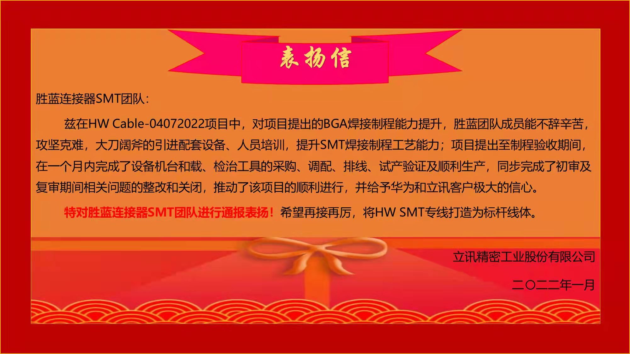 慶祝勝藍(lán)連接器SMT團(tuán)隊(duì)在項(xiàng)目上獲得突破